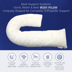 - Almohada corporal de látex de 8 lb. Funda de algodón de bambú triturado de 52”x10”.