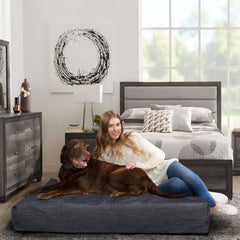 La mayoría de los perros duermen entre 16 y 21 horas al día, lo que significa que pasan mucho tiempo en su cama. Entonces, ¿por qué no invertir en la calidad de vida de tu amigo peludo? Nuestras lujosas camas para perros de 7 pulgadas de grosor están diseñadas específicamente para perros grandes de hasta 300 libras, lo que garantiza que su gran amigo envejezca con gracia y se mantenga joven y juguetón durante toda su vida.
