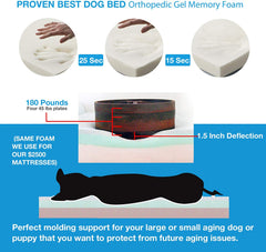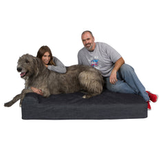 ¡La mayoría de los perros duermen entre 16 y 21 horas al día! Haz una inversión en la calidad de vida de tu perro, ¿cómo no hacerlo? Los perros no se quejan, así que nunca sabrás si se sienten incómodos con su cama, simplemente hacen lo que les dicen. ¿En qué cama preferirías dormir? Estas lujosas camas para perros de 7 pulgadas de grosor y garantía de por vida están diseñadas específicamente para perros grandes de hasta 300 libras. Las razas de perros más grandes tienden a tener problemas de salud más estructurales y necesitan una cama especialmente diseñada para garantizar que nuestros grandes amigos envejezcan con gracia y se mantengan jóvenes y juguetones durante toda su vida. Trabajamos con los ingenieros de espuma más destacados del mundo y creamos espumas de nueva tecnología que funcionan juntas para brindar un soporte como ninguna otra cama para mascotas fabricada. De hecho, esta combinación es tan buena que hemos comenzado a diseñar camas para personas con exactamente la misma configuración de espuma. La investigación y el desarrollo que se realizaron en esta cama para perros están generando la próxima revolución en las camas para dueños de mascotas.