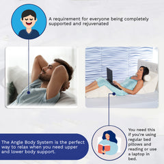 El Angle Body System es la forma perfecta de relajarse cuando necesita apoyo para la parte superior e inferior del cuerpo. The Angle, el nombre del soporte individual para las piernas, ha ayudado a millones a recuperar la salud. Un requisito para que todos estén completamente apoyados y rejuvenecidos.