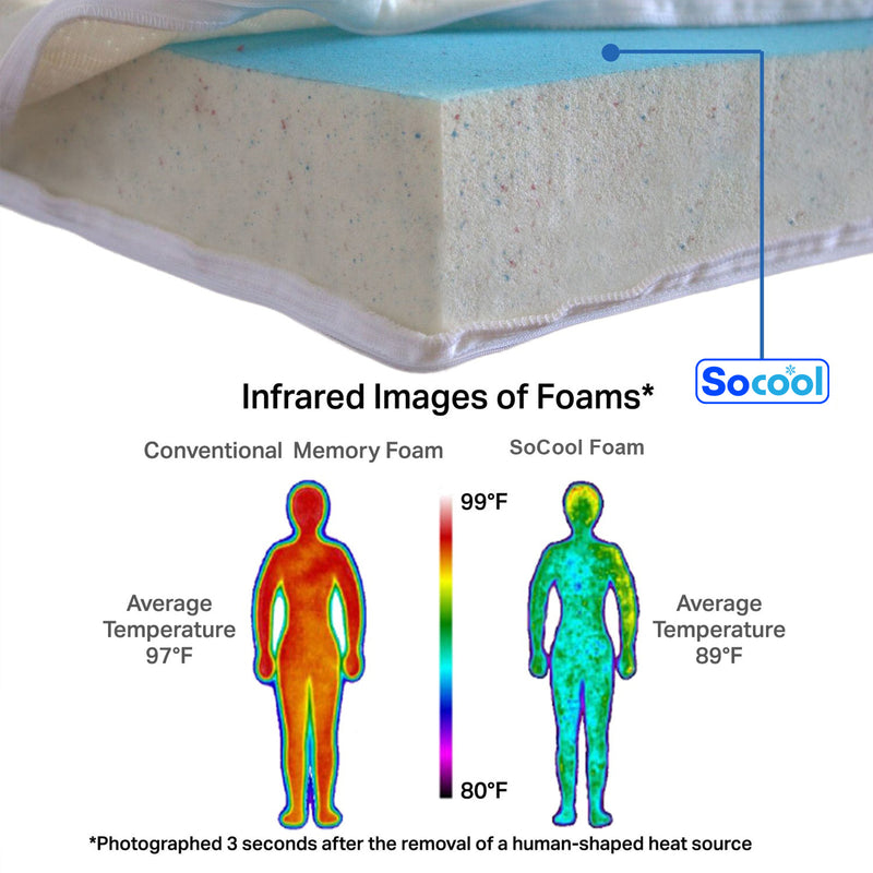 - PREVIENE DOLORES CORPORALES, NOCHES MÁS FRESCAS Y RESFRESCANTES: densidad de 2.5 lb, la espuma BCool se amolda a los contornos de su cuerpo para aliviar los puntos de presión y lo mantiene dentro de la temperatura óptima mientras duerme.